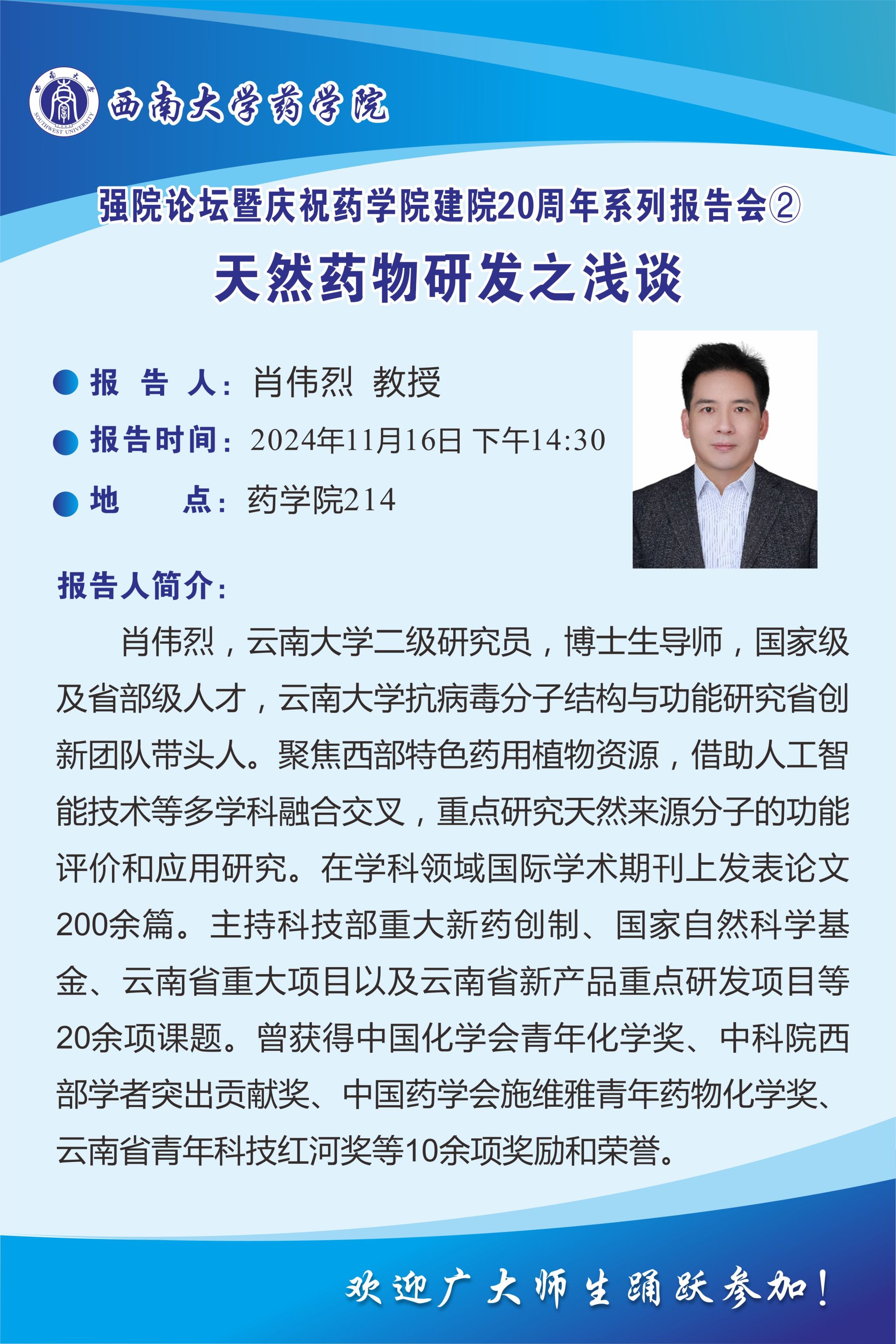 缙云药学论坛暨Betway必威西汉姆联官方网站建院20周年系列报告会(三):肖伟烈教授学术报告