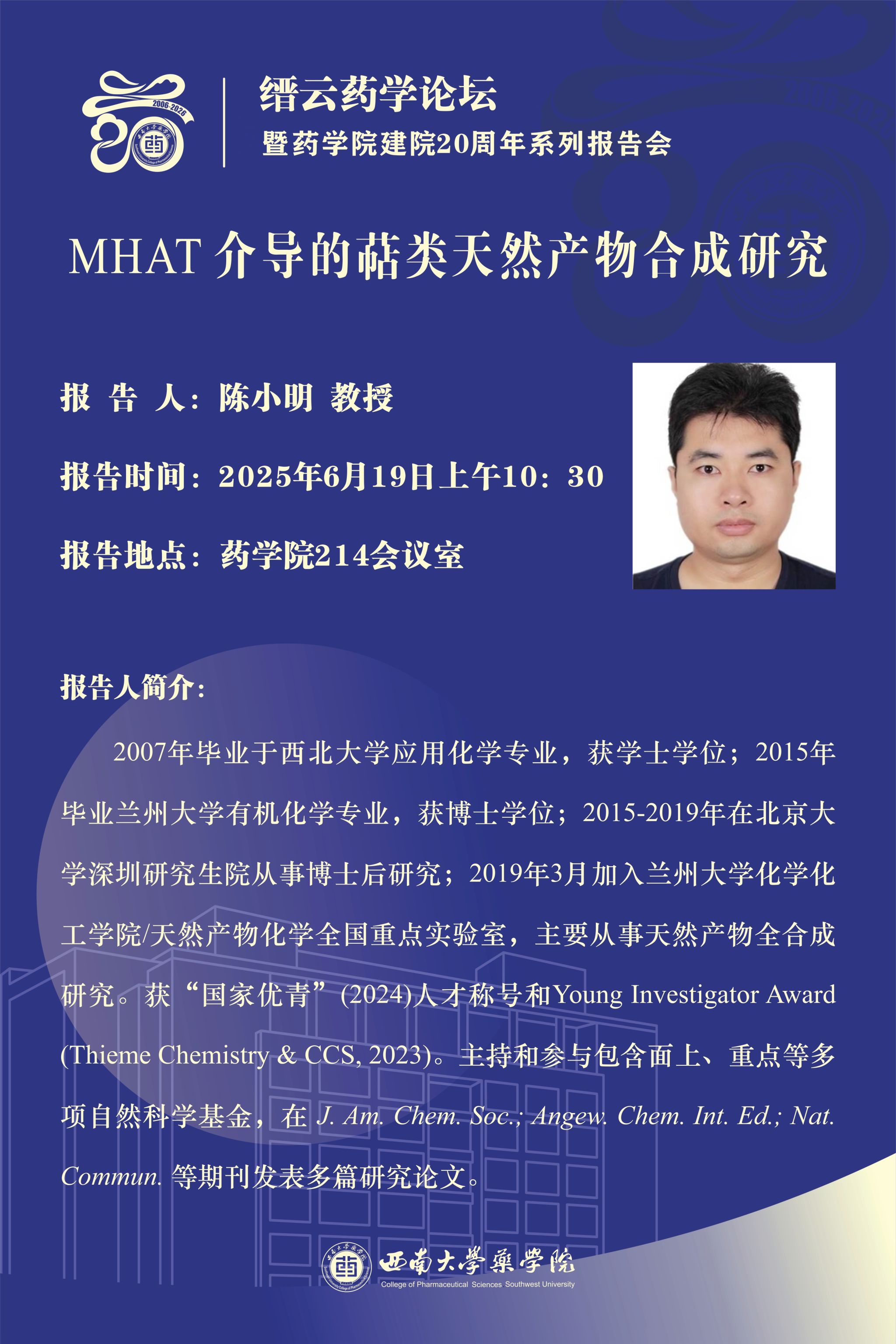 缙云药学论坛暨Betway必威西汉姆联官方网站建院20周年系列报告会(二十):陈小明教授学术报告