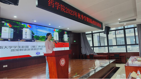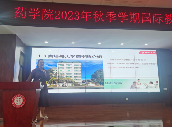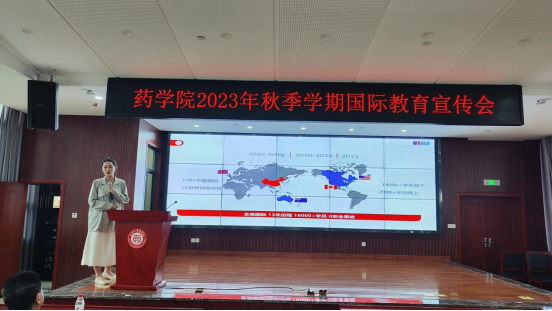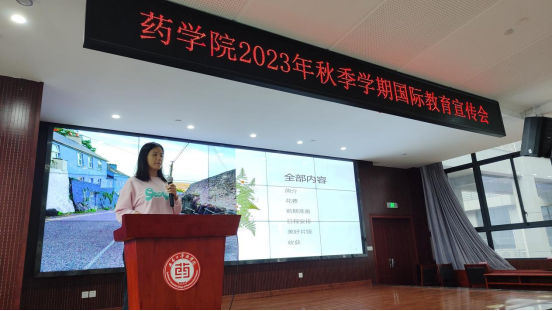 冯然然老师介绍了新西兰奥塔哥大学的学校规模、专业设置和国际化办学等情况,并从授课模式、课程内容、项目费用、项目时间、报名方式等方面重点介绍了我院与奥塔哥大学联合开设的药学专业“2+2”双学士学位项目。