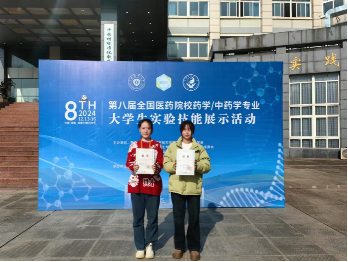 2024年12月13日至15日 “第八届全国医药院校药学/中药学专业大学生实验技能展示活动”在四川成都圆满举行。学院对本次比赛高度重视,学院党委书记陈敏教授带领5名师生前往。学院2022级制药工程专业学生李琎、2022级药学专业学生王纪琼分别获得特等奖、二等奖。