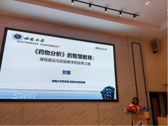 本次展示活动举办期间,实验中心联席会还组织了教育教学改革创新青年教师研讨会刘慧老师代表学院做题为<药物分析>的智慧教育:课程建设与实验教学的改革之路的交流发言。
